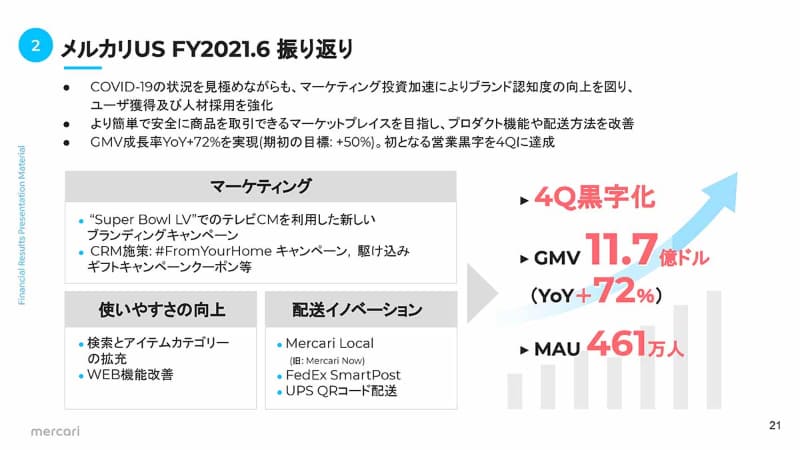 • メルカリ、日米でGMV成長率が鈍化。メルペイは収益基盤確立