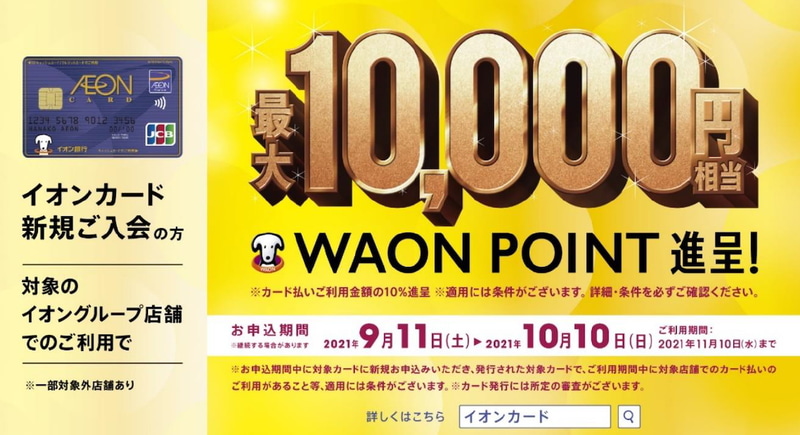 イオンカードのポイント変更記念、新規入会で最大1万WAON POINTプレゼント