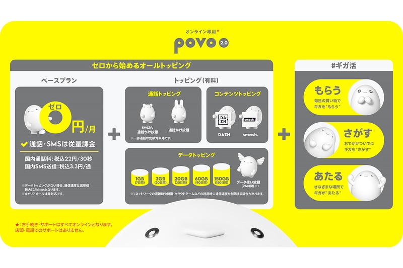 povo2.0は月額0円から。データや機能をトッピング。街で貯める“ギガ活”も(2/9)