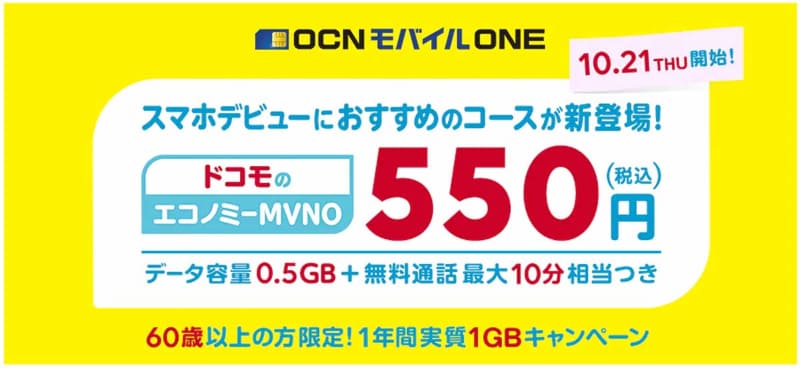 【詳細更新】OCN モバイル ONE、1GB770円~の新料金プランを発表――端末1円のセールも開催