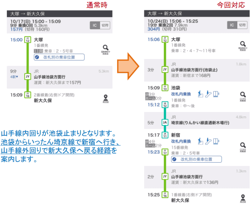 ジョルダン乗換案内、「各駅停車優先検索」無料化で密回避サポート
