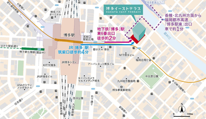 博多駅周辺地区最大級の広場整備のオフィスビル。NTT都市開発