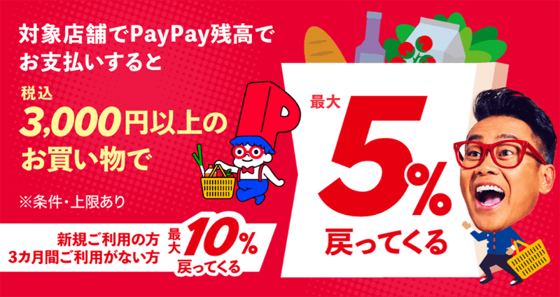 PayPay、12月はスーパー利用で5%還元。3000円以上が対象
