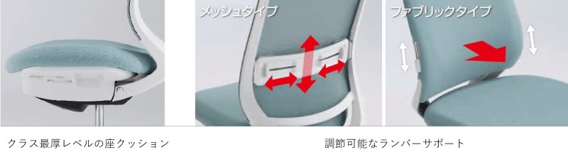 • プラス、骨盤サポートで姿勢を保てるオフィスチェア「cople」
