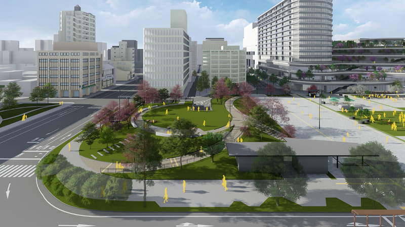 熊本にまちの大広間「花畑広場」。熊本城と庭つづき(4/7)