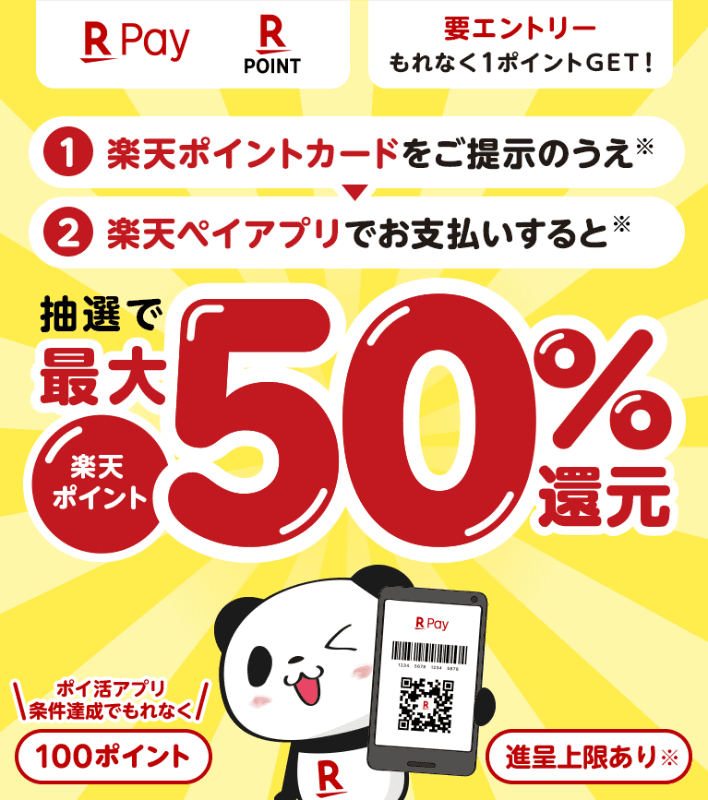 楽天ポイントカードと楽天ペイ利用で最大50%還元。年末キャンペーン