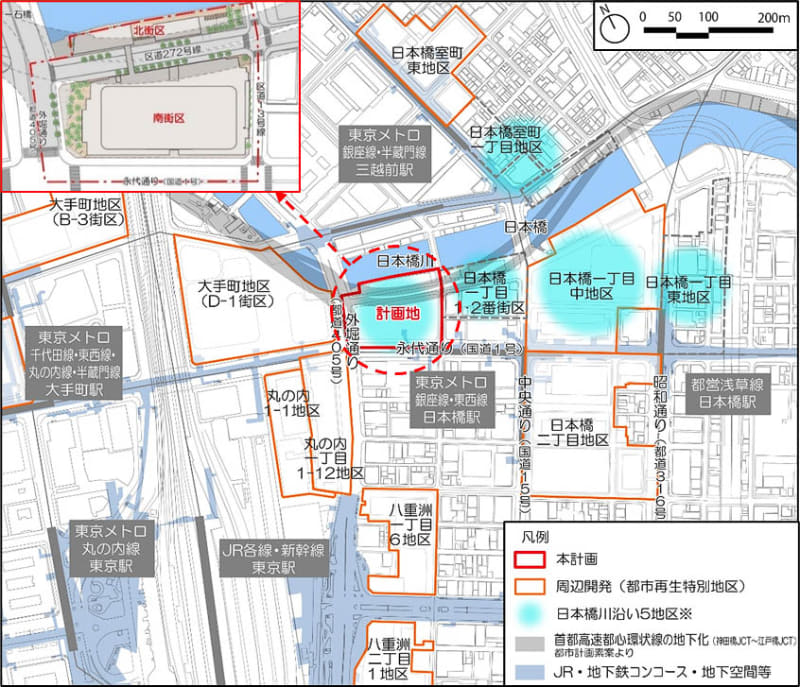 八重洲再開発、45階の大規模施設。日本橋川沿いエリア