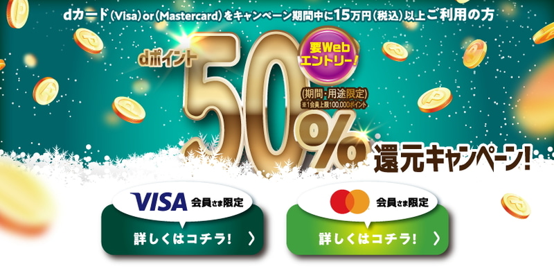 dカード、3億・50%・3倍……年末年始に総額5億円還元(3/4)