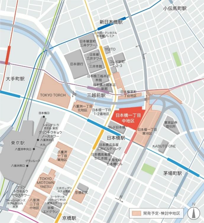 日本橋で4街区・最高25階建の再開発 川沿いには歩行者基盤