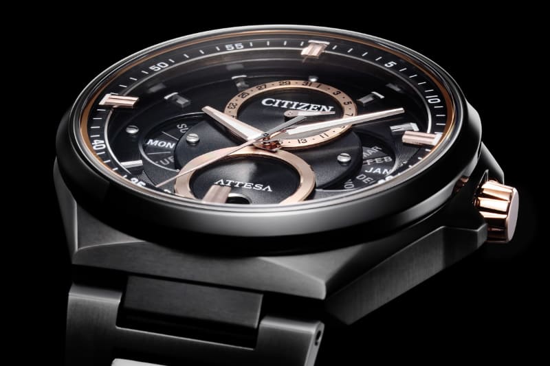 シチズン アテッサ、月面がモチーフのブラックチタン・ソーラーGPS時計