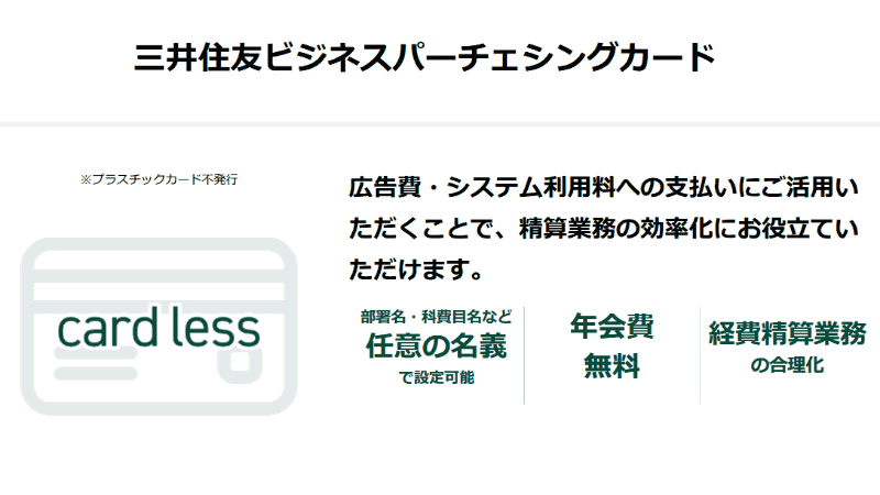 三井住友カードの新ビジネスカード。ナンバーレス、年会費無料