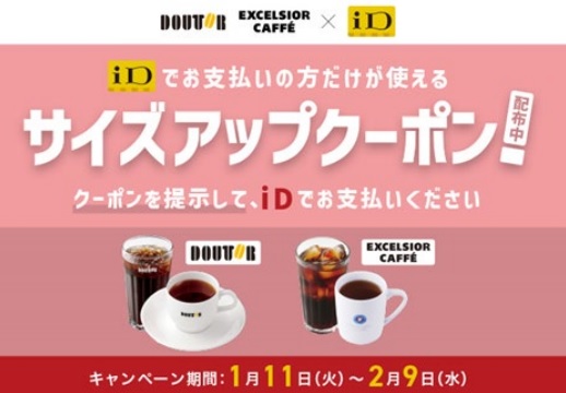 ドトール、iD払いでコーヒー・カフェラテサイズアップ