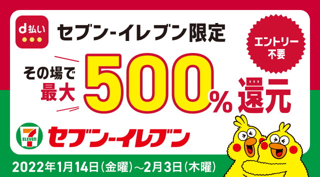 セブンイレブンでd払い、最大500%還元キャンペーン