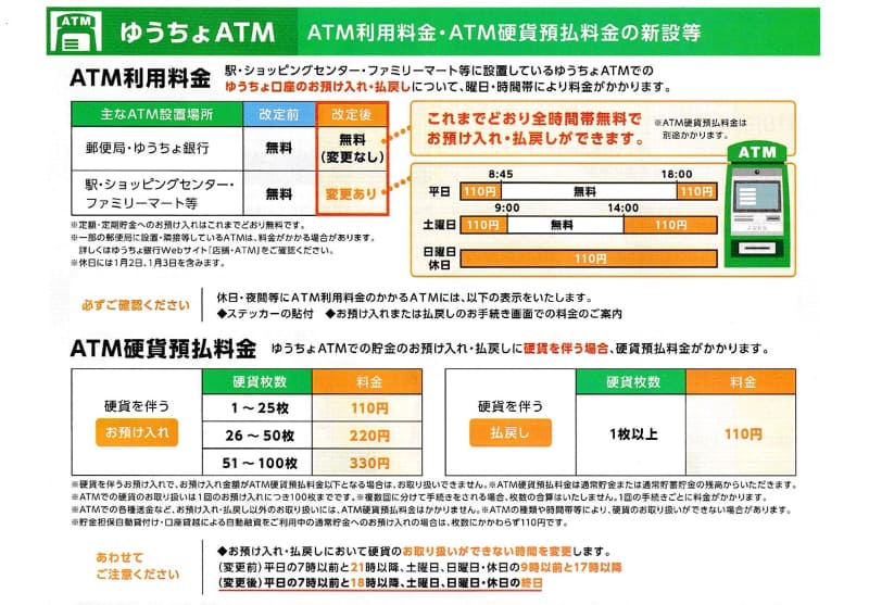 ゆうちょ銀行が料金改定。ATMからの電信振替が完全有料に