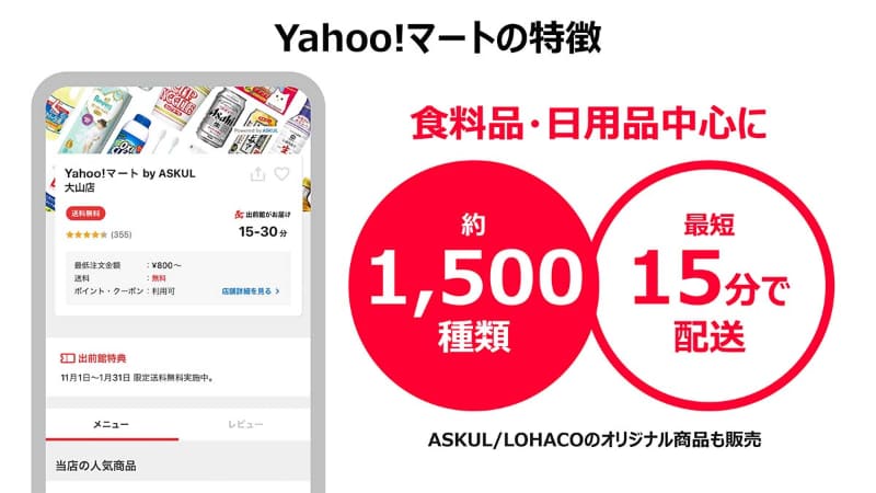 • 最短15分で配達「Yahoo!マート」に専用アプリ登場