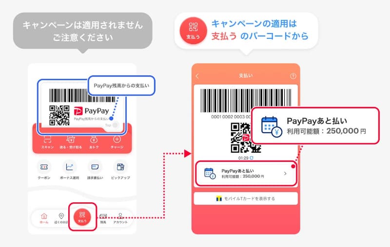 PayPay、トップ画面であと払いと残高を切替可能に。あと払いは“青“