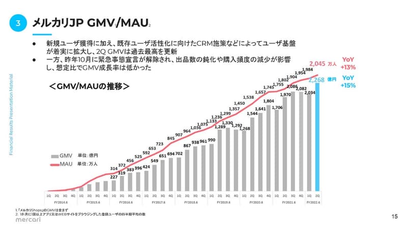• メルカリ、日米でGMV成長率が鈍化。メルペイは収益基盤確立