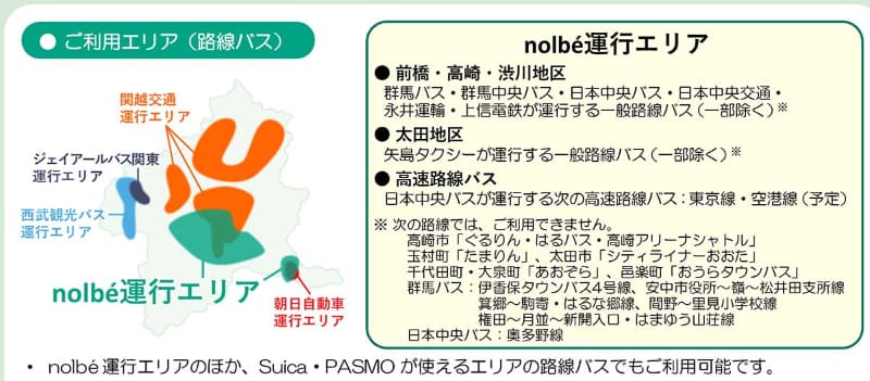 群馬のバス6社、Suica連携のICカード「ノルべ」。群馬弁の「のるべぇ」由来