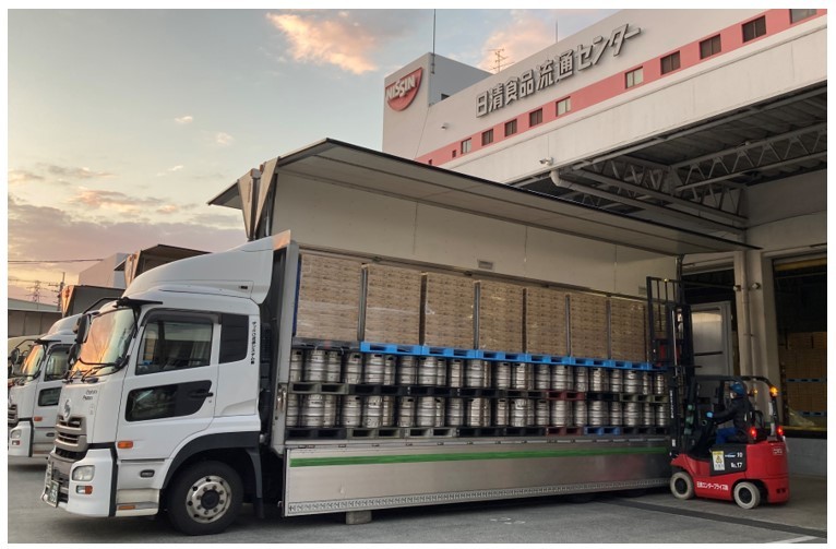 飲料の上に即席麺。日清、アサヒ飲料、日通が共同輸送