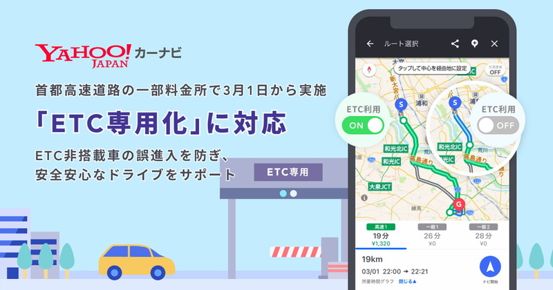 Yahoo!カーナビ、ETC専用料金所への誤進入を防ぐ新機能