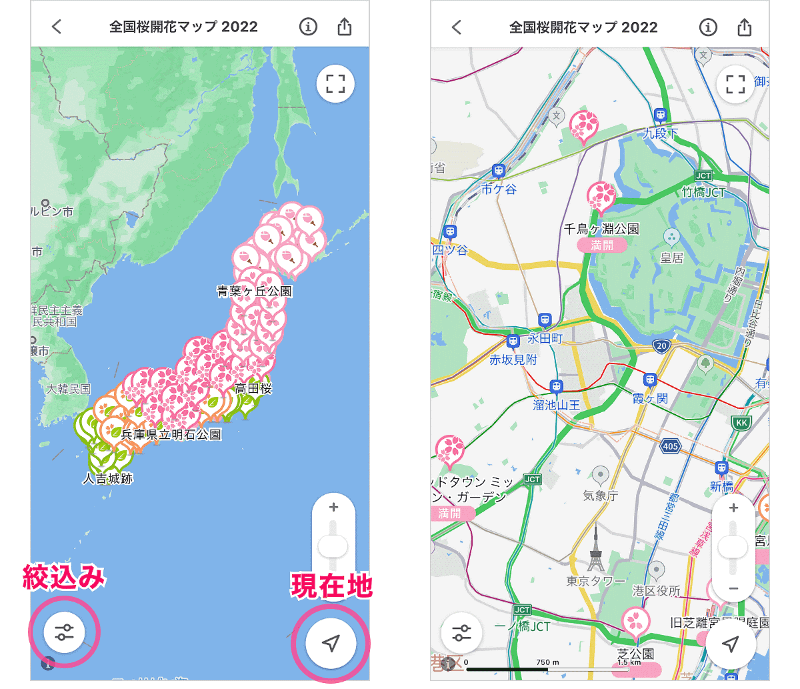 Yahoo! MAP「全国桜開花マップ 2022」 地図上で名所の開花情報(5/7)