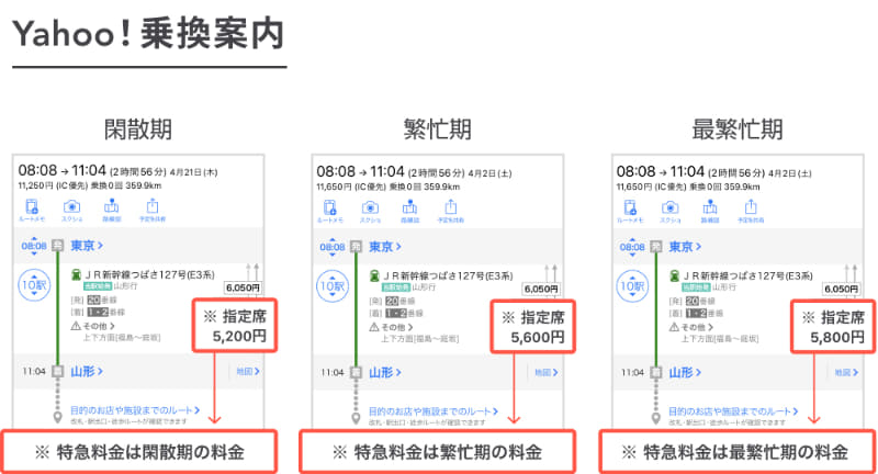 4月開始のJR特急「最繁忙期料金」に「Yahoo!乗換案内/MAP」が対応(3/4)