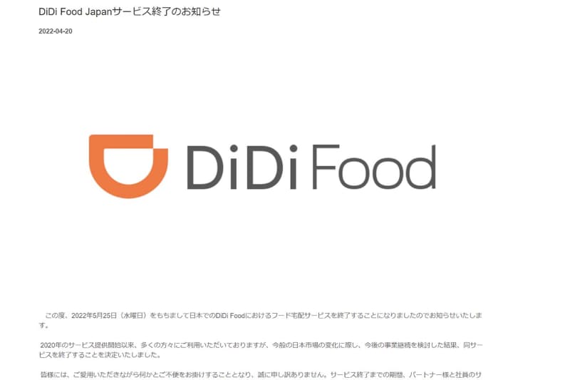 フードデリバリー「DiDi Food」開始。非接触配達にも対応