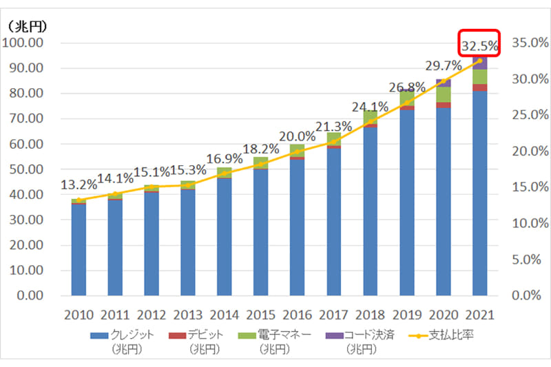 22年のキャッシュレス決済比率は36% 決済額は100兆超え