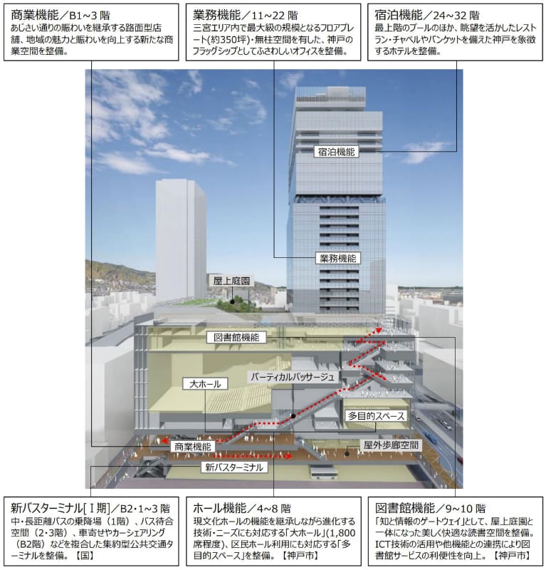 神戸三宮の32階建て複合施設着工 バスターミナル・ホール・ホテル
