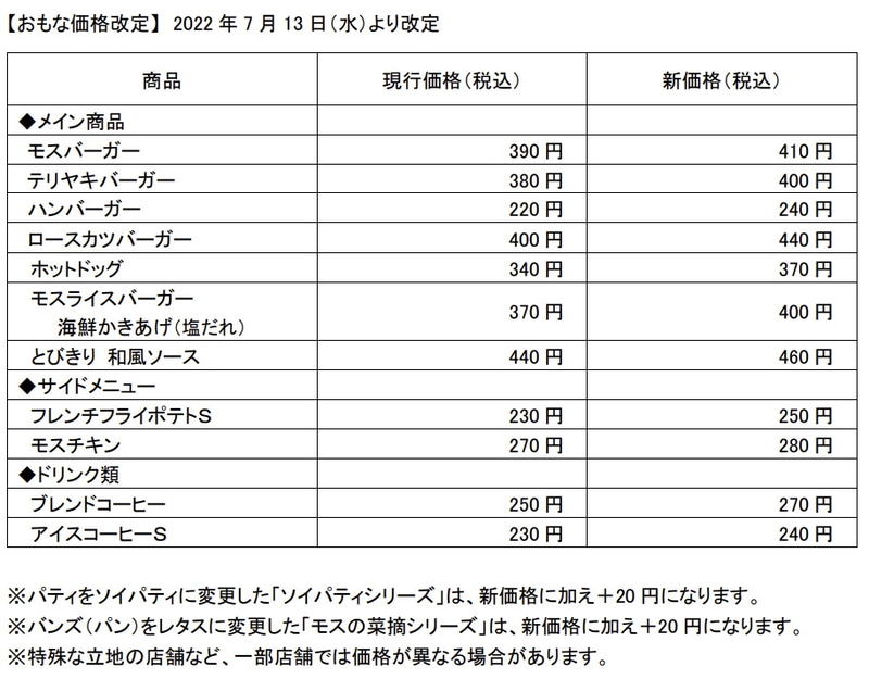モスバーガー、店内・持ち帰り価格を同額に。4月の税込表示に対応