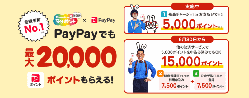 • PayPayでマイナポイント第2弾に参加した。翌日にポイント1.5万円