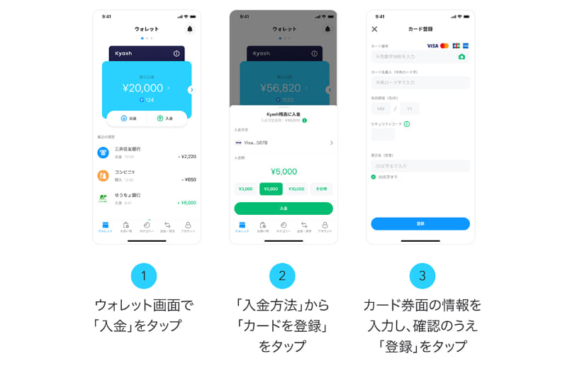 Kyash、クレカで入金した残高をすぐ送金可能に