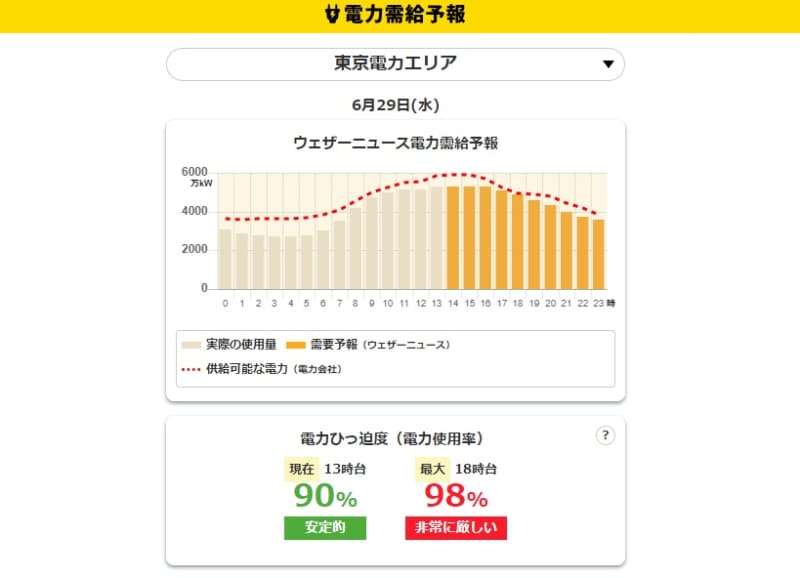 29日も「電力需給ひっ迫注意報」 15~20時に電力需給が厳しく