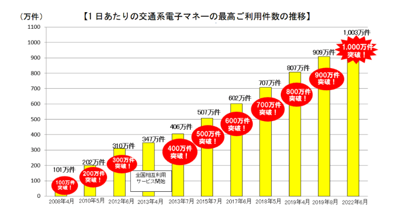 交通系電子マネーの1日あたり利用数が800万件突破