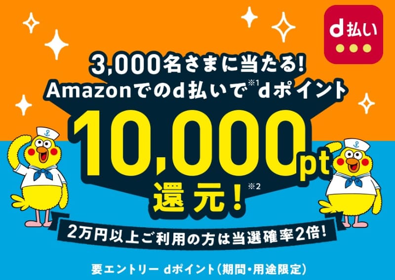アマゾンでd払いを使うと1万ポイント還元(抽選)