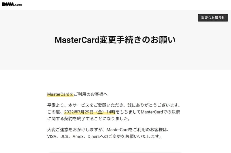 「DLSite」でVisa・Mastercardの利用停止