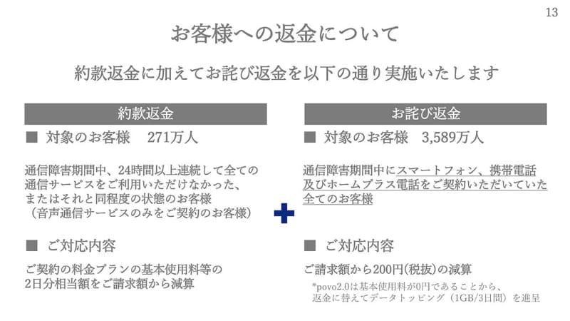 KDDI、大規模障害の返金案内を16日から送付。ユーザーの申告は不要