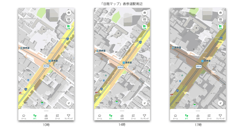 ナビタイムが「日陰マップ」 ウォーキングアプリでリアタイ表示