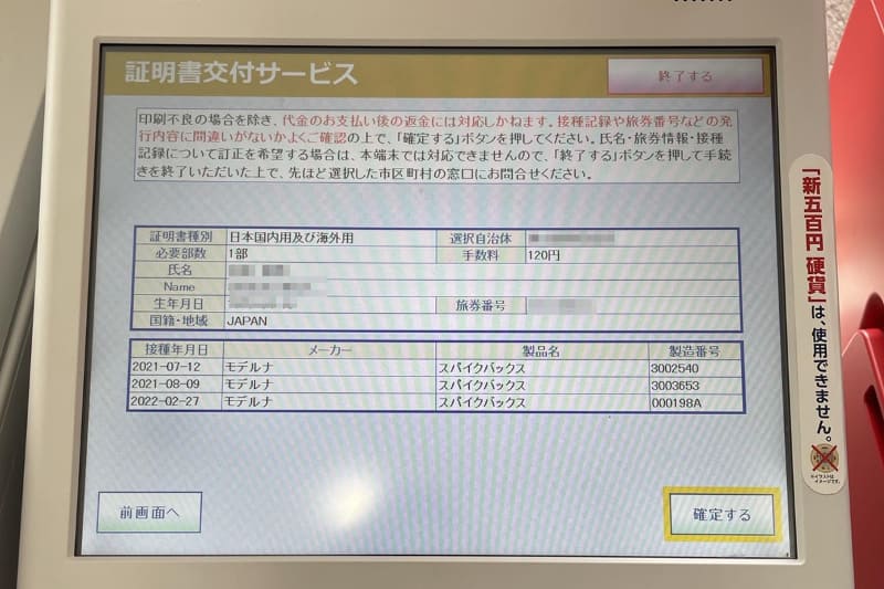 • ワクチン接種証明書をスマホで発行した。本当に5分で完了