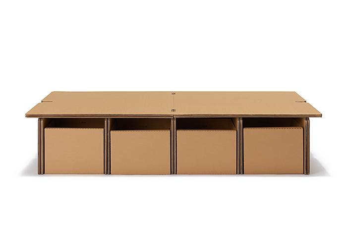 5分で組み立てられる「段ボールベッド」。ナカバヤシ