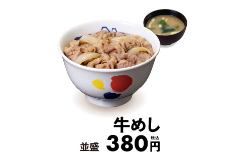 松屋、牛めし価格380円に統一。プレミアム牛めし終了・牛めし値上げ