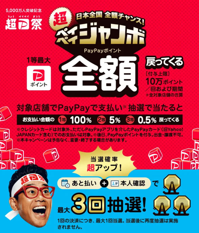 5000万人突破記念「超PayPay祭」 10月17日スタート