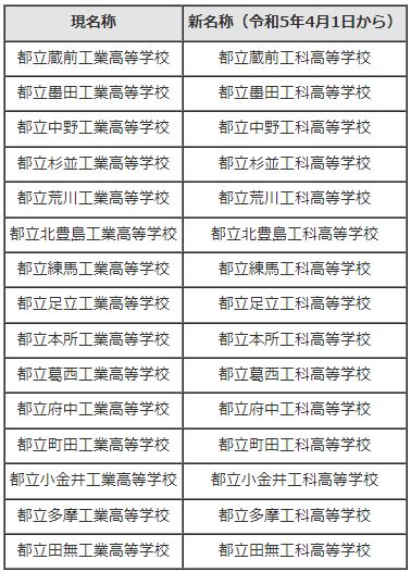 東京都、工業高校→工科高校に名称変更。23年4月から