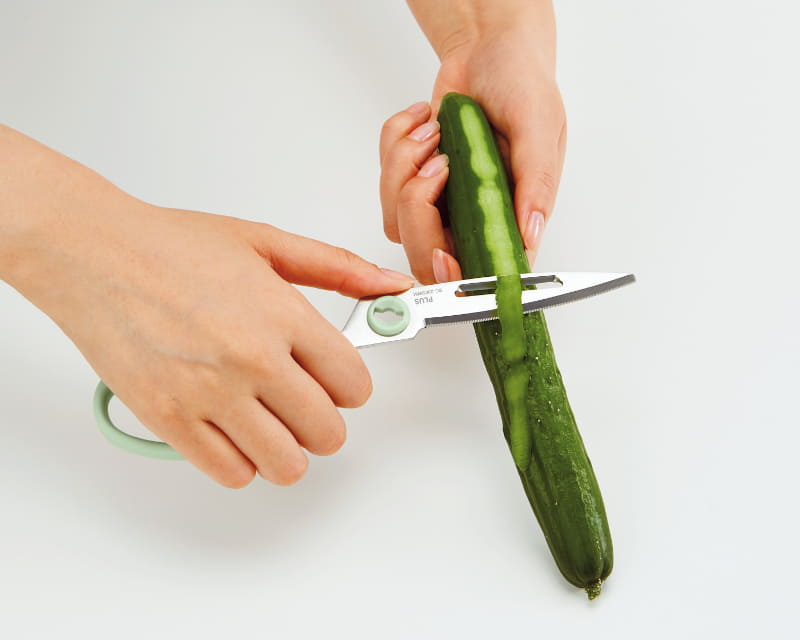 プラス、ピーラーや栓抜にもなる「フィットカットカーブ 多機能料理はさみ」(7/13)