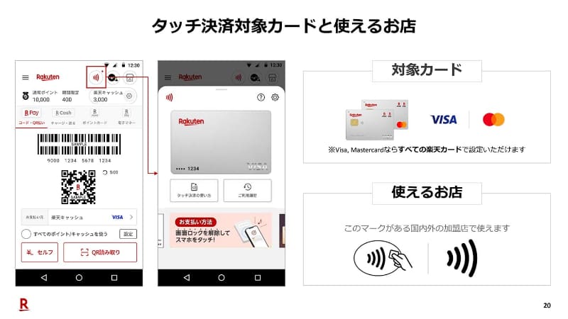 • 楽天カード、ビザ・マスターのタッチ決済が「楽天ペイ」アプリで可能に