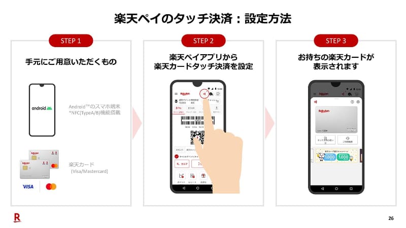 • 楽天カード、ビザ・マスターのタッチ決済が「楽天ペイ」アプリで可能に