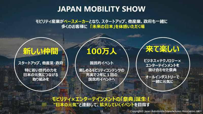 • 自工会 豊田章男会長、「東京モーターショー」は「ジャパンモビリティショー」になると発表 モビリティは将来1000万人の成長産業