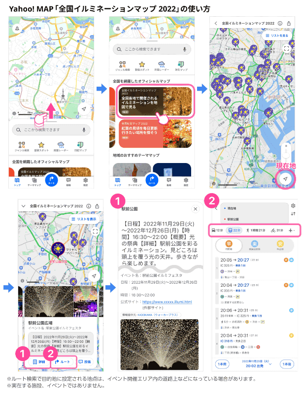 Yahoo!マップ、全国400カ所のイルミネーションスポットを表示