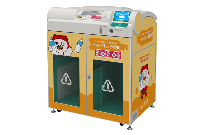 ペットボトル回収機に700本収納の大容量タイプ。ラベルは自動判別