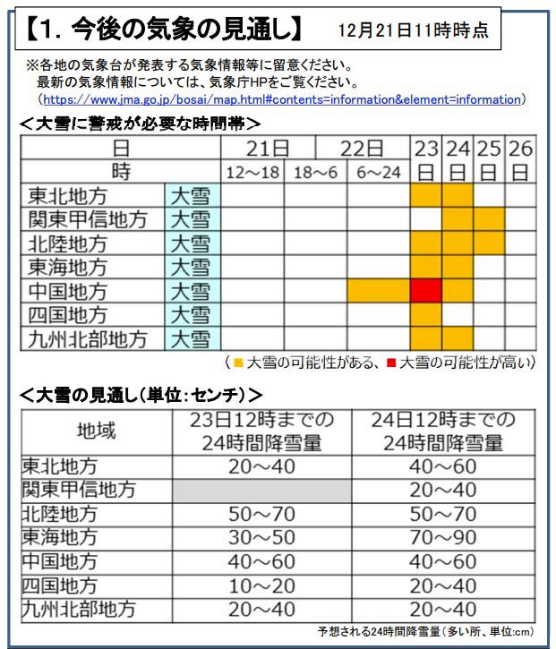 10~11日は関東の大雪に注意。東京で5~10cmの積雪